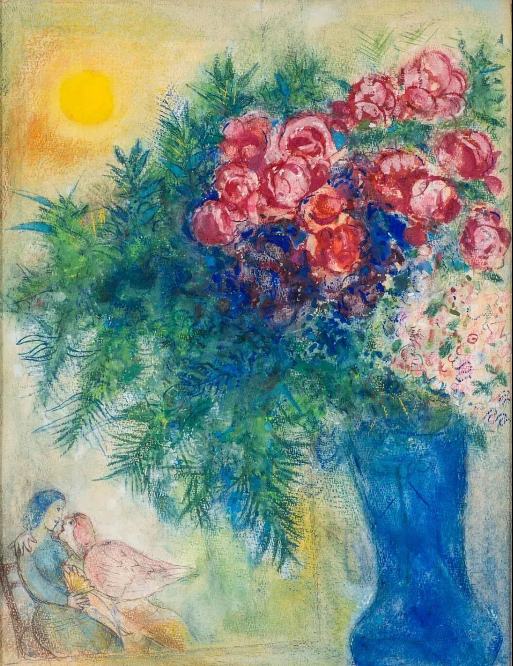 图4 夏加尔《恋人和花束》,综合材料,1935-1938