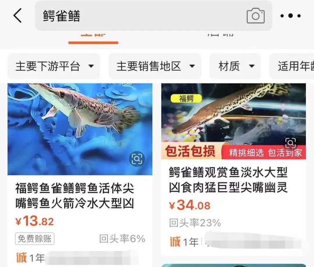 27日,记者查阅电商平台发现,部分平台已无法搜索到鳄雀鳝,但在一些电商平台上,仍有商家在出售鳄雀鳝,一条鳄雀鳝只需几十元便可买到。