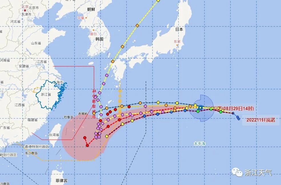 杭州市气象台分析,由于台风生成时纬度较高(北纬25.9℃),通常情况以向北移动为主,但这次它偏偏一路向西。西太平洋的副热带高压孕育了台风“轩岚诺”,副热带高压中心在它的北侧,它在副热带高压的南侧,副热带高压南侧一直盛行偏东气流,所以11号台风“轩岚诺”驾着东风而来,一路西行。