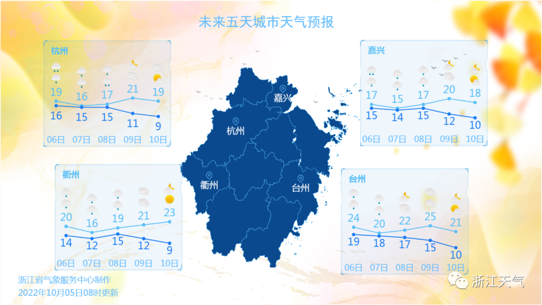 以杭州为例,接下来的一周里,受冷空气影响,气温将会持续下降并突破下半年新低。先是6日夜里冷空气补充,使7-8日主城区最低气温降至15度左右;再是9日又有冷空气南下,气温再次明显下跌,10-11日最低气温只有10度出头。
