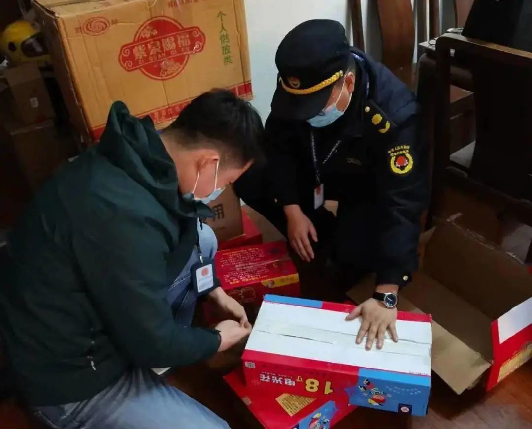 “仓库存放大量烟花爆竹,而且没有任何消防安全设备,周边都是居民。冬季天气干燥,如果发生爆炸,后果不堪设想!”民警章斌立即查处该批烟花爆竹,共查获“开门红”“大吉大利”“亿万富翁”等多个品种100余箱。