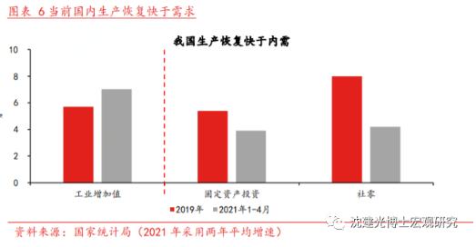 警惕通胀压力上涨及其连带影响。如前文所述,短期供需缺口持续叠加中长期政策环境转变,全球通胀压力可能持续增加。在此背景下,国内上游原材料价格向下游消费品持续传导,从而引发全面通胀的风险不容小觑。政策层面,面对经济复苏过程中基础不牢、结构性失衡等问题,应保持宏观政策连续性和稳定性,密切观察全球通胀走势以及政策应对;同时,在保障大宗商品供给、稳定通胀预期的同时,降低上游原材料和下游消费品价格分化对企业利润的冲击。