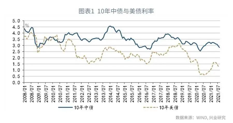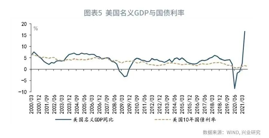 在新冠疫情爆发后,中美10年国债利率的中枢出现了不同程度的下行。除了疫后潜在经济增速放缓外,疫情期间杠杆率的抬升可能也是利率中枢下降的重要原因。根据国际清算银行(BIS)披露的数据,2020年第四季度中美的非金融部门杠杆率分别达到289.5%和296.1%,较2019年第四季度分别提高了26.6和42.8个百分点。杠杆率越高,非金融部门的债务负担就越重,就越需要引导利率水平下降以减轻偿债压力。