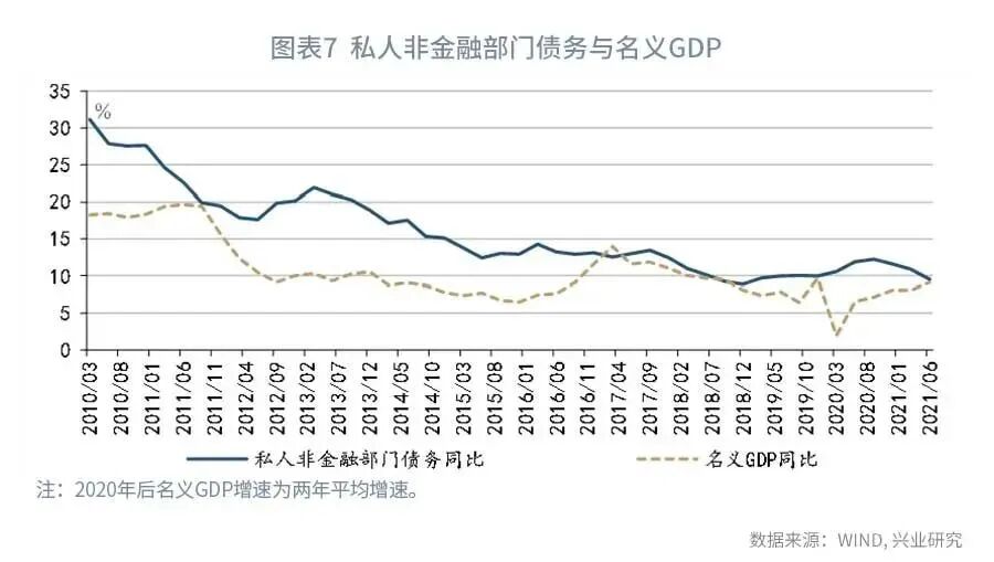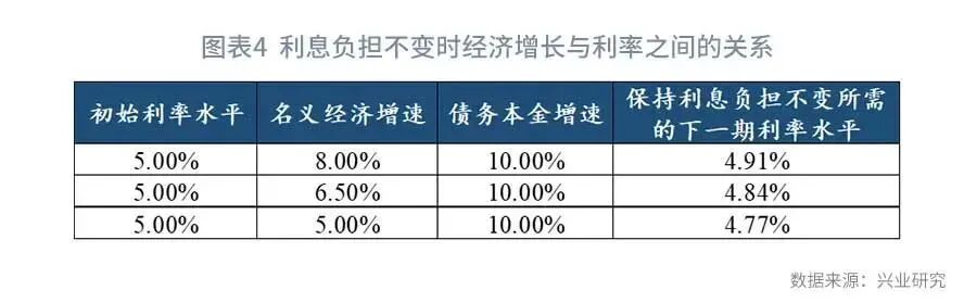 此时,使利率等于名义GDP增长率已经不足以稳定杠杆率。要稳定杠杆率,需要使利率低于名义GDP增长率。