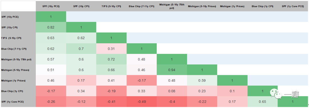 [18]权重取决于某单一通胀预期指标与其他20个通胀预期指标波动的相关性,如果某一通胀预期指标与其他指标的相关性高,权重也会更高。