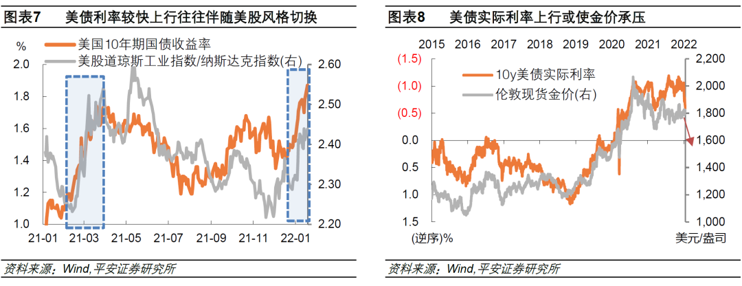 1)预计2022年上半年,10年美债实际利率向0靠近,基本回到新冠疫情爆发前水平,即仍有40bp左右的上行空间。