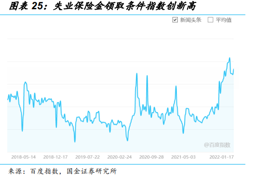 疫情反复背景下,消费行业利润修复的力度和空间或受约束。在12月疫情扰动下,我国社会消费品零售总额12月同比增长1.7%,表现远不及预期。往后看,一方面,预防式储蓄意愿的提升抑制了消费倾向,央行城镇储户调查显示居民储蓄意愿上行但消费意愿低迷。另一方面,就业压力持续存在,导致收入预期下行,进而约束消费能力。数据显示领取失业保险的人数2020年4季度以来持续处于高位,且2021年4季度以来,百度指数中“失业保险金领取条件指数”持续显著提升,表明消费行业板块的实质修复仍需要时间。