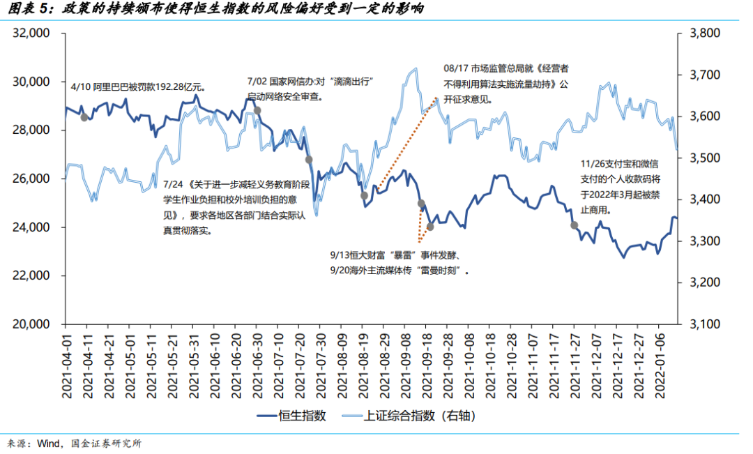 (1)2021年年初以来,尤其是下半年,市场上各种看多港股的言论频出。然而,与主流预期截然相反,2021年下半年以来,恒生指数一路下行,主要与内地经济基本面以及行业整顿政策密切相关。