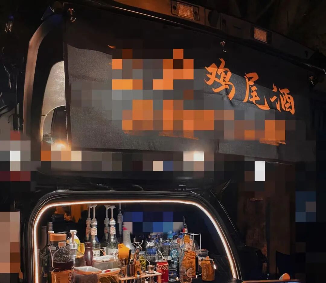 大小不一的调酒瓶罐、蓝白纵横的霓虹灯管,挤满了整个后车尾箱。黑底橙字的鸡尾酒招牌被高高挂起,醒目异常。他在江边贩卖的是特调鸡尾酒,更是漫漫长夜在路灯下的微醺氛围。