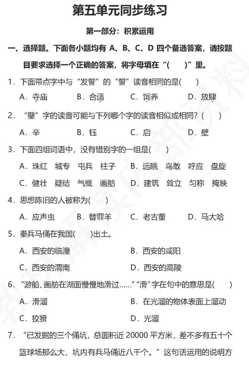 今天教材解读给大家奉上第五单元的测试卷,希望各位可以及时总结学过的知识,查漏补缺……