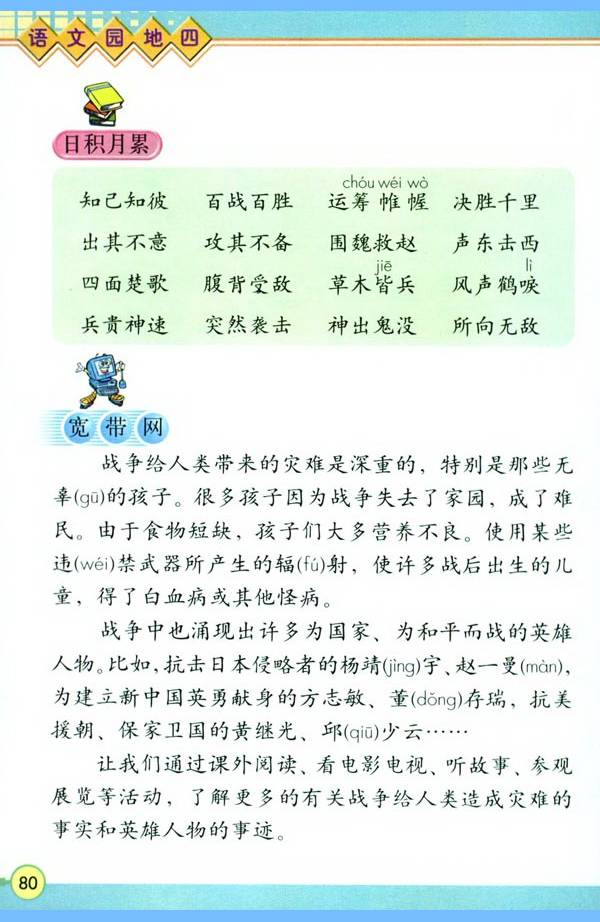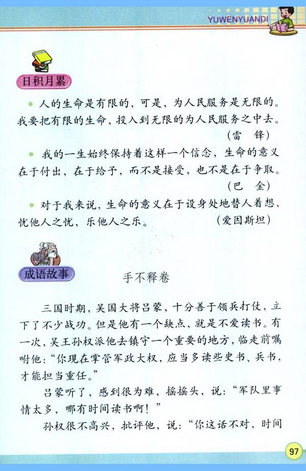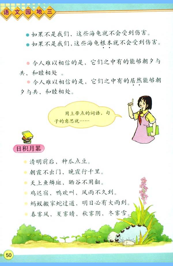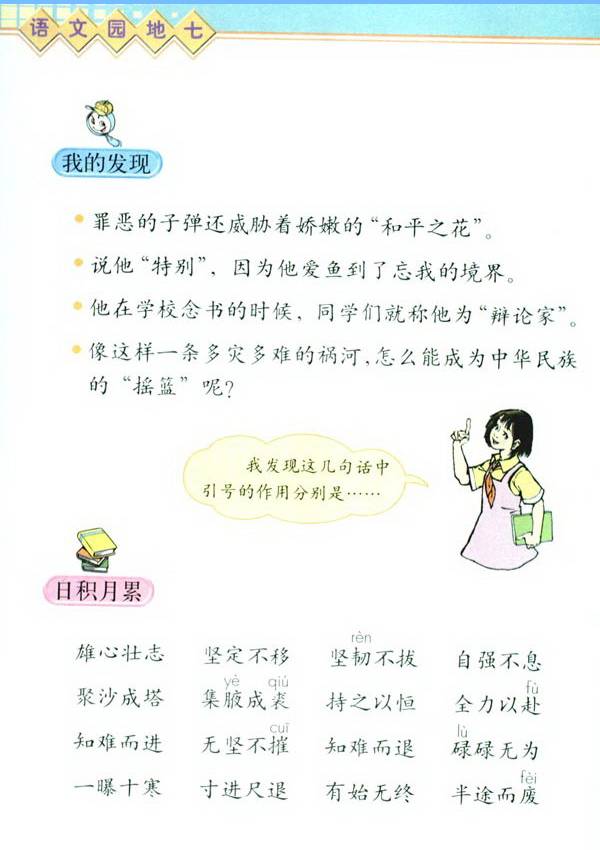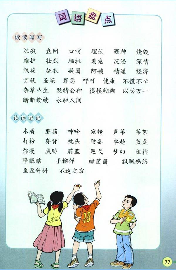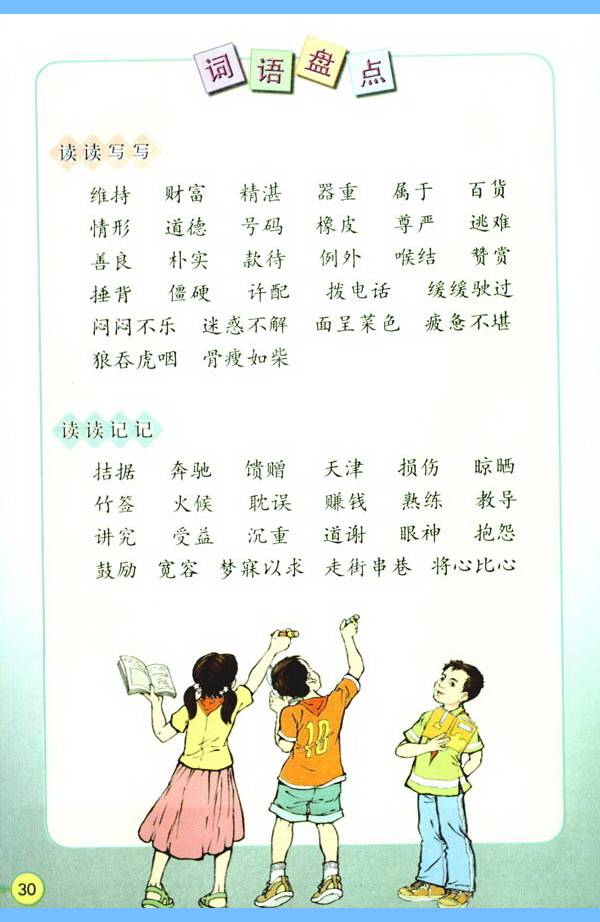 5.综合性学习:在综合性学习活动中,有目的地搜集资料,提出不懂得问题,开展讨论,解决生活中的简单问题。