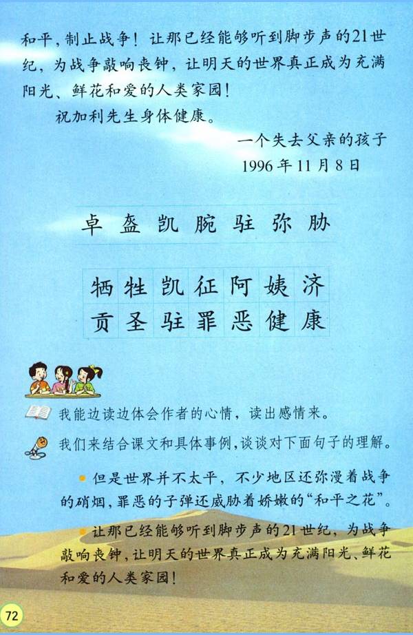 5.体会课文表达的思想感情,并交流阅读感受。