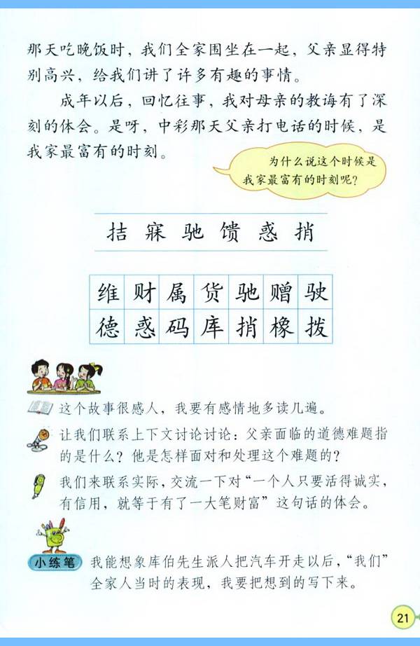 3.口语交际:在交谈中能认真倾听,养成向人请教、与人商讨的习惯。听人说话能把握主要内容,并能简要转述。能清楚明白地讲述见闻,并说出自己的感受和想法。