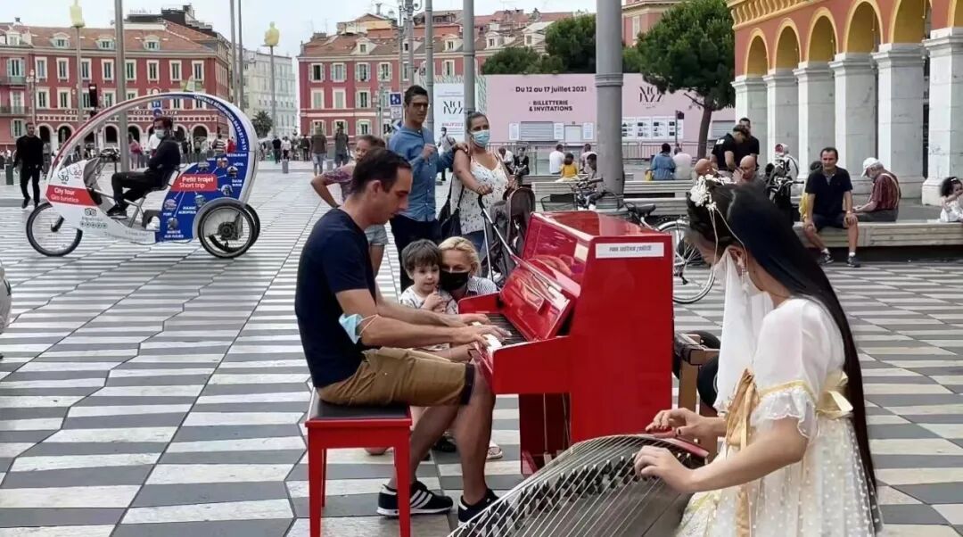 彭静旋自小学习古筝,已在法国求学多年。她说,自己在法国街头表演古筝的初衷非常简单——“分享美好,分享音乐”,同时也期待“将古筝作为一个桥梁,让更多法国人认识和了解我们的乐器”。