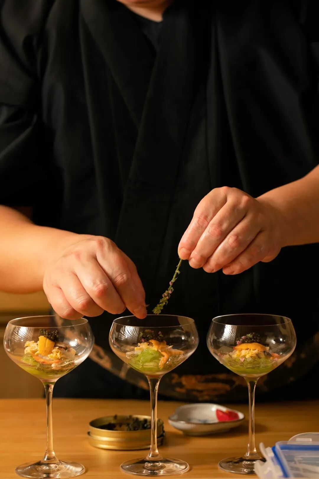 The owner is a Taizhou native, and the menu is mainly based on Taizhou flavors. The chef has was once the Head Chef of Japanese cuisine for eight years and worked at the Michelin restaurant 8 1/2 Otto e Mezzo.