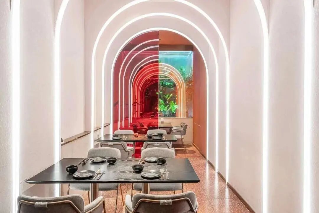 There is only one simple concave bar in the store, with a total of 8 seats around, and the restaurant takes three rounds of seating every night.