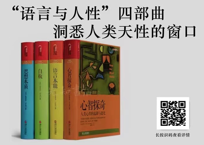 是的,人性经不起考验,不要站在道德制高点上俯瞰他人。而有时候,这样的“俯瞰”是以我们习焉不察的语言形式表现出来的。语言,是人类最伟大的发明。正是因为有了语言,人类的心智发展才远超其他物种。然而,这个大约30万年前就出现的事物,直到最近一个世纪,才开始被研究是如何与人类认知相关联的。斯蒂芬·平克(Steven Pinker),哈佛大学实验心理学博士,麻省理工学院认知神经学中心的掌门人。1994年,他的《语言本能:人类语言进化的奥秘》一经出版,就成为轰动一时的畅销书,并入选《美国科学家》(American Scientist)评出的20世纪100本最佳科学书籍。而这本划时代的著作,更成为平克“语言与人性”四部曲的首篇,在随后十来年中,他又陆续推出三本相关书目,为“语言与人性”四部曲画上圆满句号——如今的斯蒂芬·平克,已然是公认的当代思想大家。他是哈佛大学的心理学教授,又拥有哈佛学院荣誉教授头衔;2004年,他当选《时代》杂志全球100位最有影响力人物;2010-2011年,又两度被《外交政策》杂志评为全球顶尖思想家;而在2013年《前景》杂志“最伟大思想家”的评选中,他名列第三。如此伟大的思想家,实在不应该被我们中文读者错过。为此,闻道不分朝夕诚荐斯蒂芬·平克这套不可多得的“语言与人性”四部曲。感兴趣的朋友,请长按下图识别二维码,查看详情并一键收藏下单。![]()