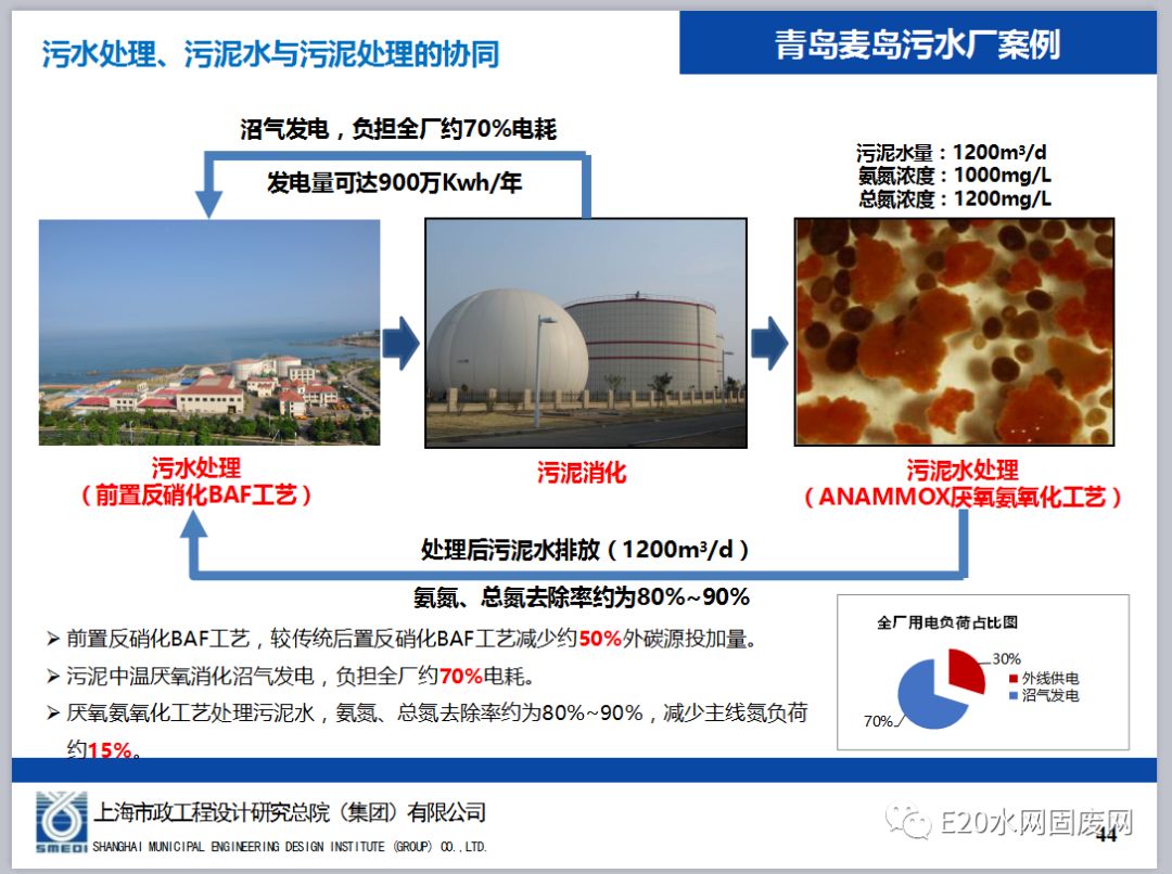 “青岛麦岛污水厂案例有它自身的特点,污泥有机质含量比较高,它的整个厌氧硝化沼气发电,负担全厂约70%电耗。我们进一步把污泥当中的磷等资源再回收,氨氮、总氮去除率约为80%~90%,减少主线氮负荷约15%,将污水处理厂变成城市的能源厂和资源厂。”张辰自豪地表示,若我们能够将一座污水处理厂变成城市的资源厂和能源厂,成为城市生命线不可或缺的一部分,那么污水处理厂的意义和价值将被放大。