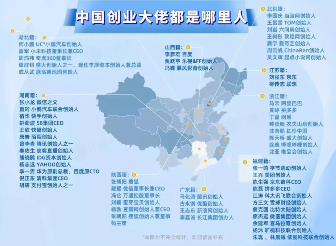本篇源自薛总某天转的一张图《中国的创业大佬都是哪里人》,引发我的好奇:环境产业上市公司的老板都是哪里人?他们是在老家创业的多还是到外地创业的多?通过整理资料得知,39个民营环境上市公司,其创始人来自18个省(直辖市),并且72%为60后。