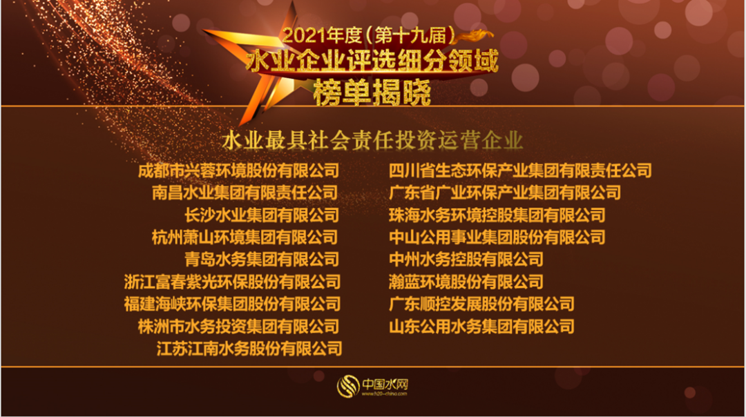 榜单揭晓:水业最具社会责任投资运营企业榜单&获奖企业分享