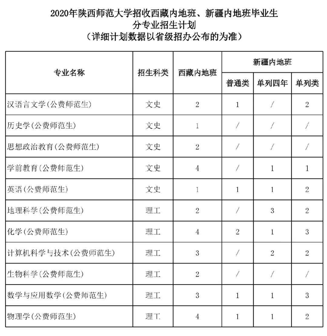 西藏内地班、新疆内地班毕业生分专业招生计划