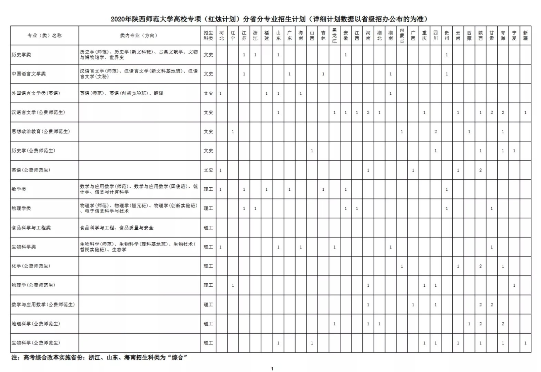 高校专项(红烛计划)分省分专业招生计划