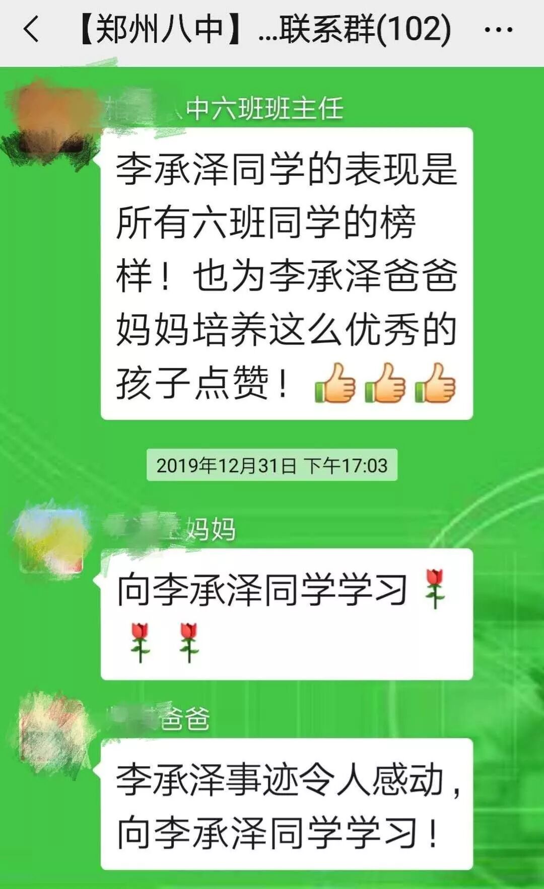 “尊敬的郑州八中学校领导和老师,您们好!首先向你们表示最衷心的感谢,感谢学校培养的好学生李承泽……”2019年12月31日上午,作为楼栋长,门卫秦师傅代表小区居民来到郑州八中,送去一封感谢信,感谢该校七年级六班学生李承泽及时发现天然气泄漏,并积极帮助疏散邻居,避免了更大事故的发生。