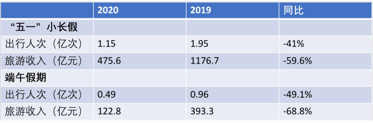 文旅部官方数据显示,今年“五一”小长假和端午假期期间,全国累计接待国内游客人次和累计国内旅游收入均较2019年有较大幅度的下降。另外从数据中可以观察到,今年游客的人均消费远低于去年同期水平,这是因为疫情冲击下大部分人的收入降低以及消费意愿的减弱——可见旅游行业期待的报复性消费尚未出现。