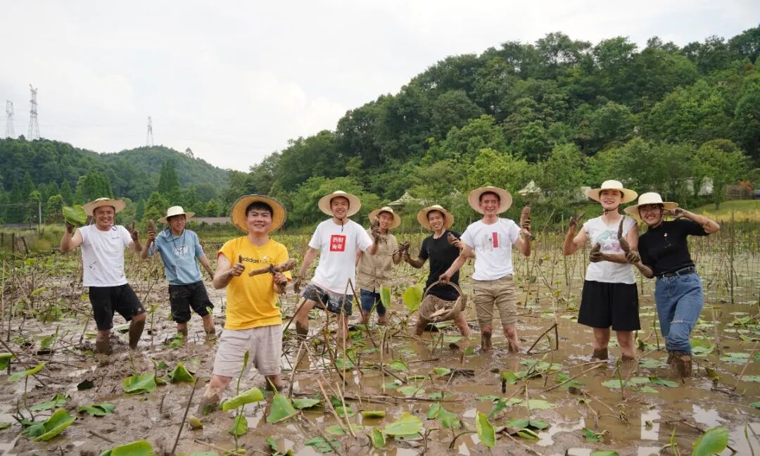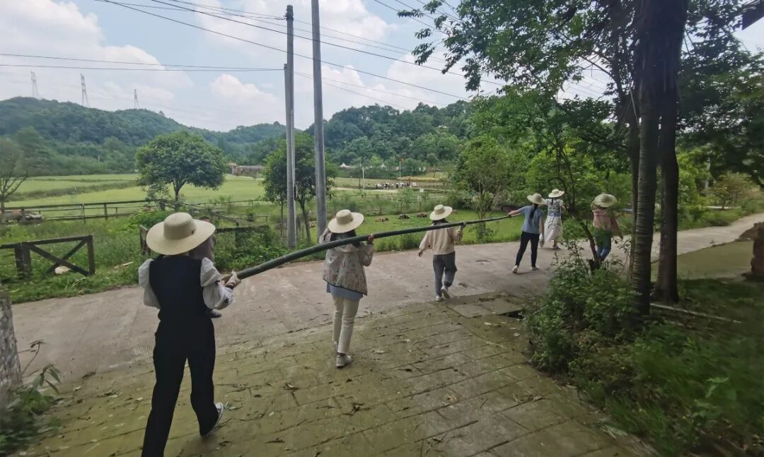当日下午,师生们到中国最美乡村、四川省乡村振兴示范村五星村实地观摩新农村建设成果,对建设社会主义新农村和实施乡村振兴战略有了更深刻的理解,对“党组织+新型集体经济组织”的发展治理模式有了更直观的认识。师生们在崇州缘道农场戴上草帽,挽起袖子,躬耕田间。在农场老师的指导下,完成了平整田地、制作保温苗床和营养土、精细播种等全流程的晚稻育秧过程;在田间为四季豆搭起了支架,收割了菜籽;在池塘赤脚挖藕,收获颇丰。同学们浸润着汗水,在田间感悟着劳动的光荣和喜悦。活动期间,我校与崇州缘道农场举行了校外劳动实践基地授牌仪式,双方将在劳动实践育人方面继续深入开展合作。