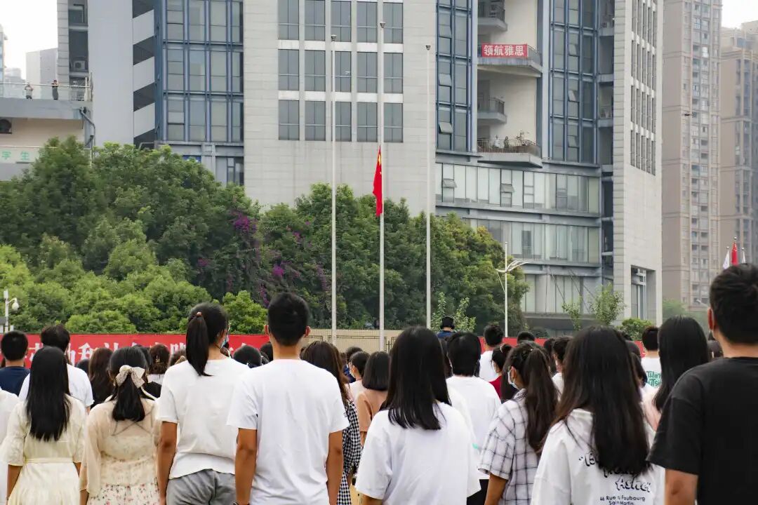 在庄严的升国旗仪式中,开学典礼正式开始。