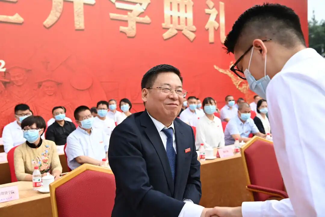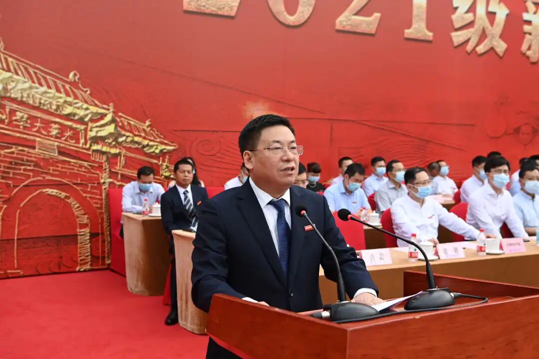 赵德武在主持典礼时殷切寄语新生。他深情讲到,百年党史恢弘巨著,教育事业是光辉篇章,西南财大是精彩一页。建校96年来,从黄浦江畔到浣花溪边,从奠基光华到创业柳林,学校始终与国家民族共命运,始终与时代发展同进步,展现了中国高等教育发展的世纪变迁,绘就了西财人团结奋斗、抢抓机遇、创新发展、追求卓越的壮丽画卷。赵德武指出,当代青年是与新时代同向同行、共同前进的一代,生逢盛世,肩负重任。新时代西财青年经历了国庆七十周年、建党百年等大庆大典的洗礼,经受了脱贫攻坚、疫情防控等大战大考的磨砺,是平视世界的一代。他期待2021级西财学子在宝贵的大学时光里,不负韶华、不负时代,在广阔的西财舞台上敢于有梦、勇于追梦、勤于圆梦。赵德武对2021级新生提出三点希望。要坚定理想信念,从党史学习中激发信仰、汲取力量,坚定“四个自信”,不断增强做中国人的志气、骨气、底气,树立为祖国为人民永久奋斗、赤诚奉献的坚定理想。要勇于创新创造,牢记“国之大者”,服务国家急需,保持锐意创新的勇气、敢为人先的锐气、蓬勃向上的朝气,让创新创造成为青春远航的动力、青春搏击的能量。要矢志砥砺奋斗,勤学善思、明辨笃行,苦练本领、增长才干,在攀登知识高峰中追求卓越,在投身社会实践中锤炼品格,努力成为德智体美劳全面发展的社会主义建设者和接班人!
