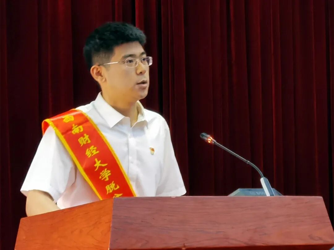 文书洋,白族,中共党员。西南财经大学中国金融研究中心教师。四川省脱贫攻坚先进个人、四川省教育脱贫攻坚专项奖励获得者,西南财经大学优秀共产党员、脱贫攻坚先进个人。2022年4月,获得“四川五四青年奖章”表彰。