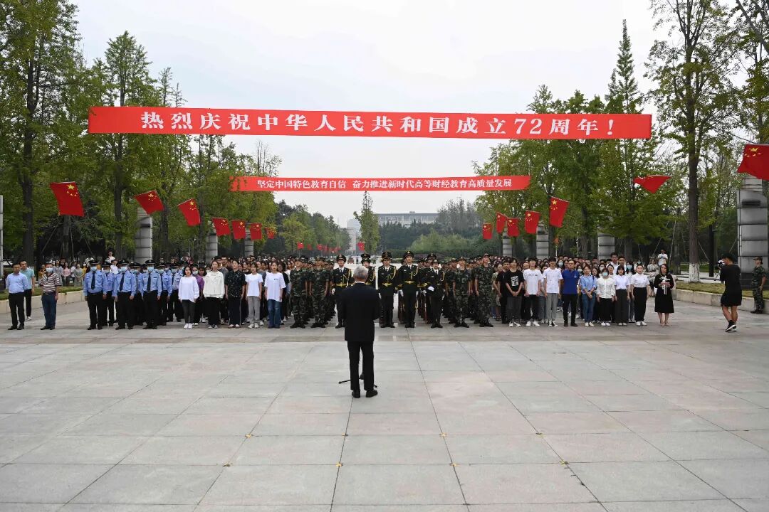 家有山河锦绣,国有岁月芳华。10月1日清晨,西南财经大学庆祝中华人民共和国成立72周年升国旗仪式在柳林校区、光华校区隆重举行。200余名西财师生怀着激动而喜悦的心情,齐聚两校区升旗台,向伟大祖国献礼,与全国人民一道为新中国庆贺生日。党委副书记曾道荣与法学院、国际商学院师生代表,国旗班成员和校卫队员等参加了柳林校区升国旗仪式;党委常委、副校长欧兵与保险学院、统计学院、继续(网络)教育学院师生及校卫队员等参加了光华校区升国旗仪式。相关职能部门和学院负责人主持升国旗仪式。