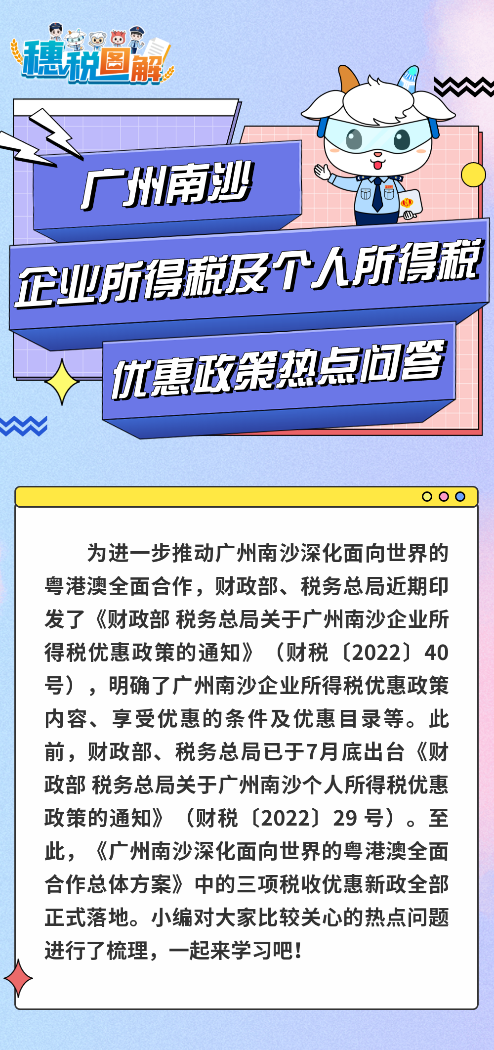 (三)《财政部 税务总局关于广州南沙企业所得税优惠政策的通知》(财税〔2022〕40号)