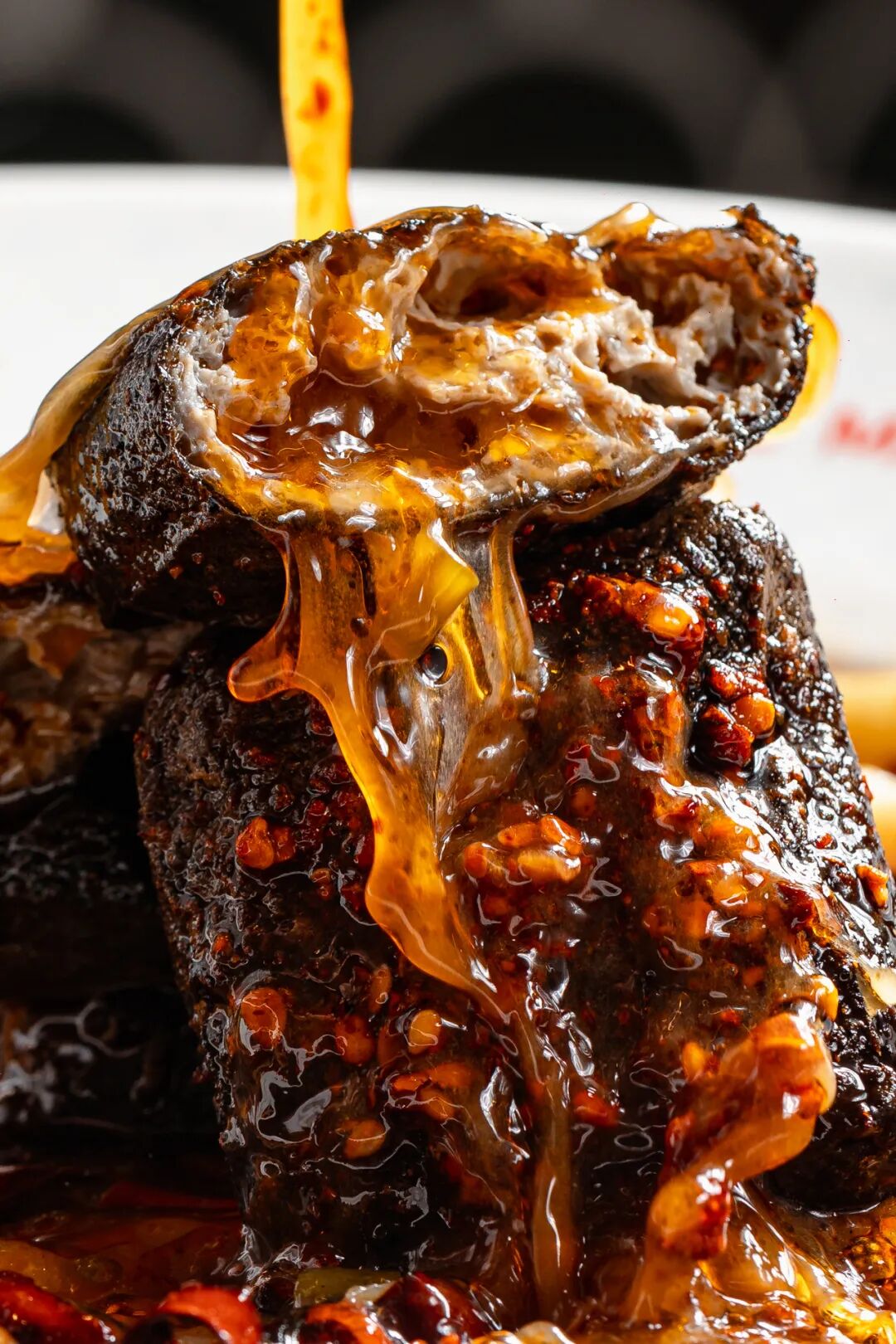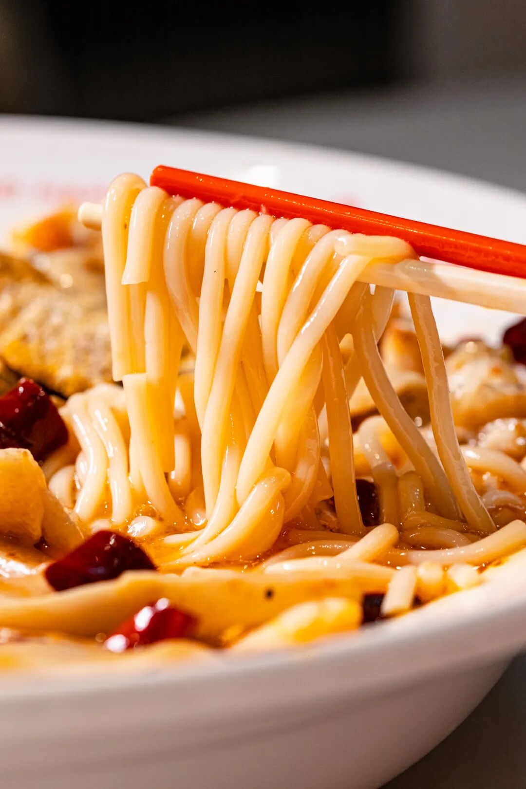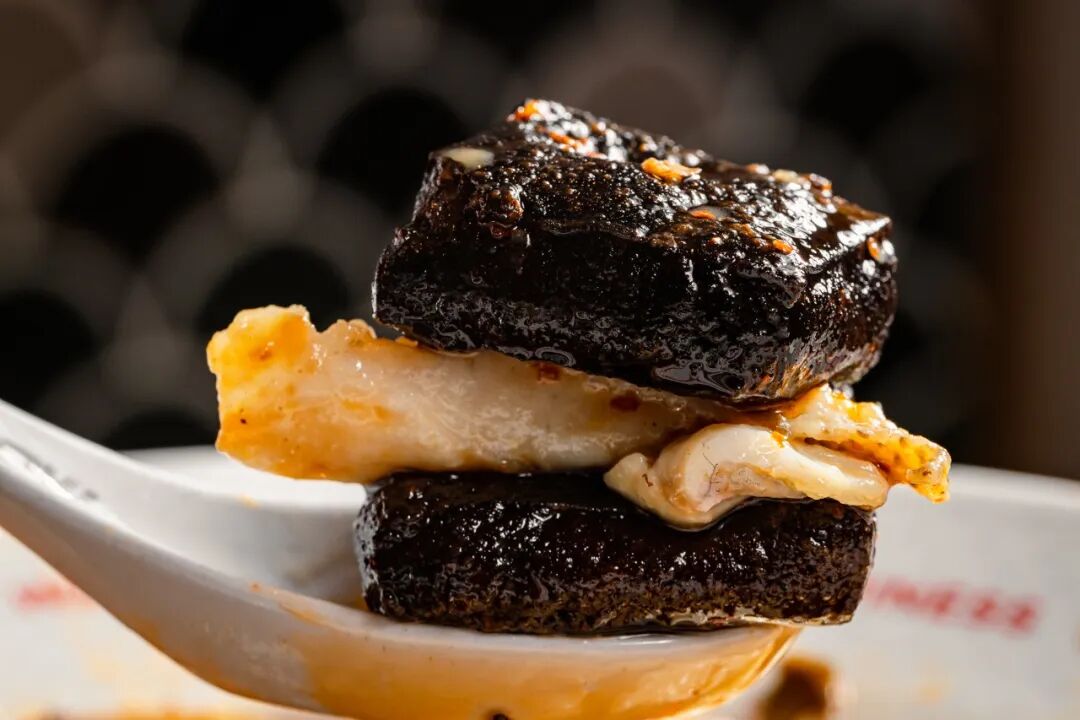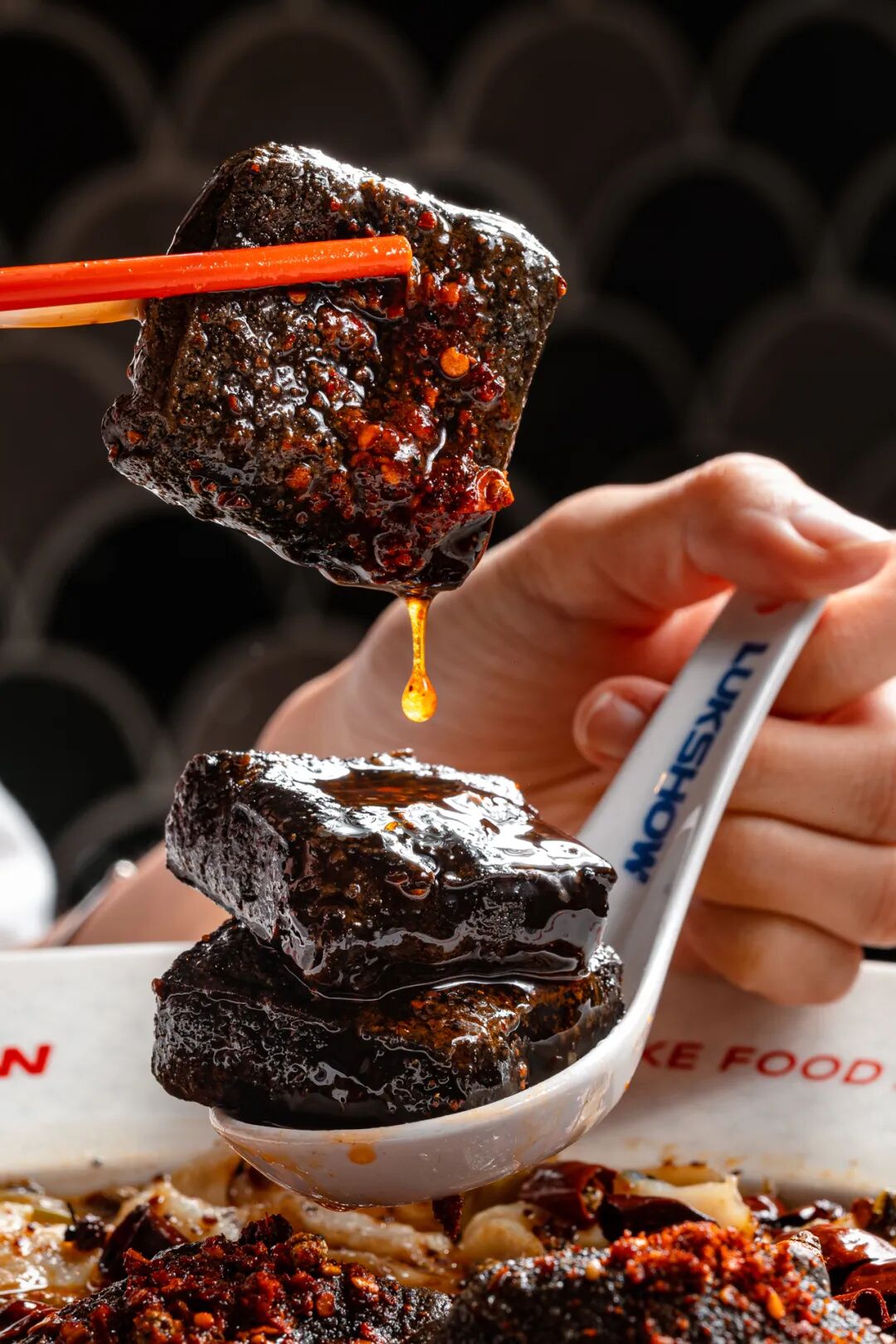臭豆腐表面被炒得焦脆,香辣味随着汤汁渗入其中,稍稍破开豆腐皮让汁水流进去,那股爆汁的爽快感,一口就有!