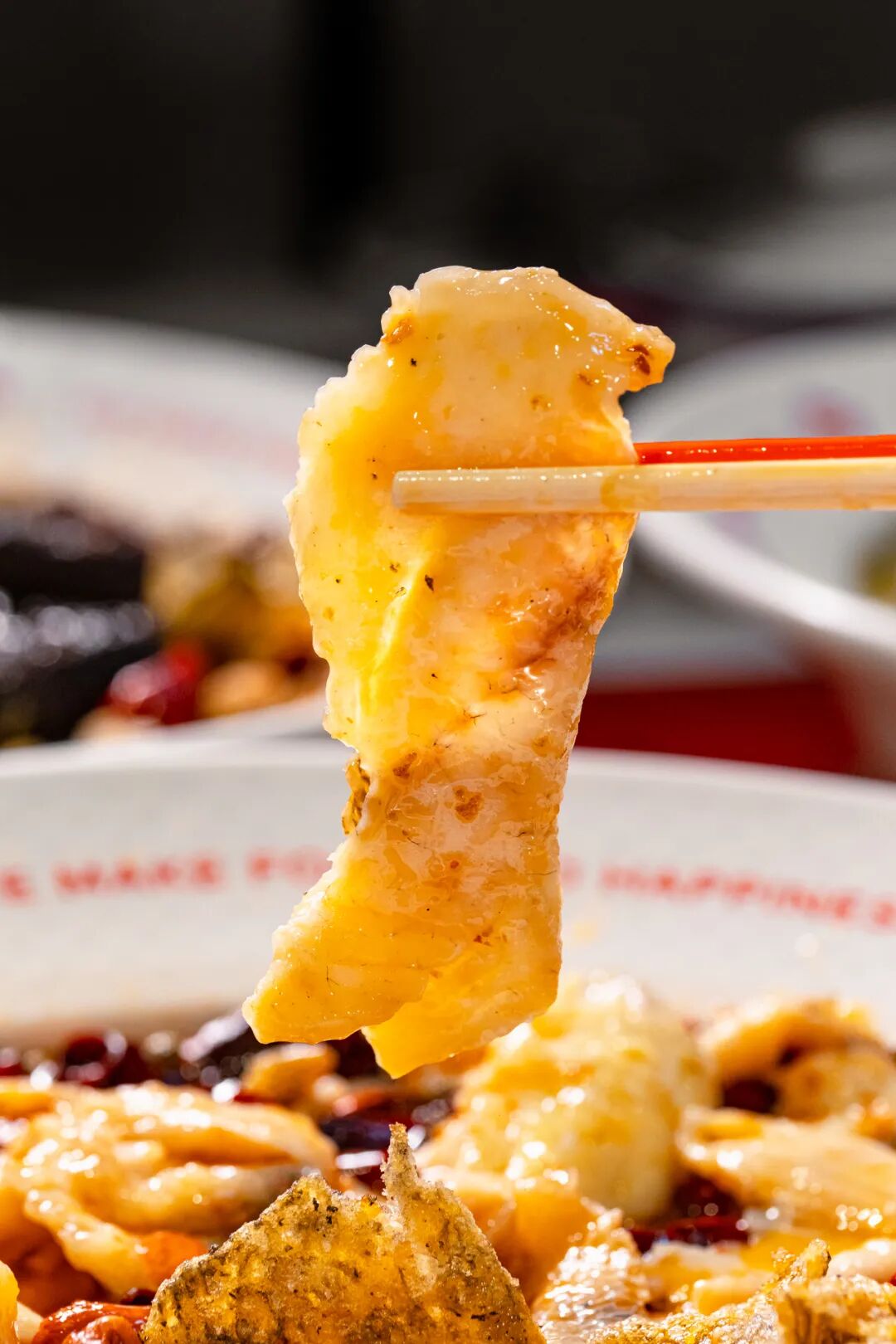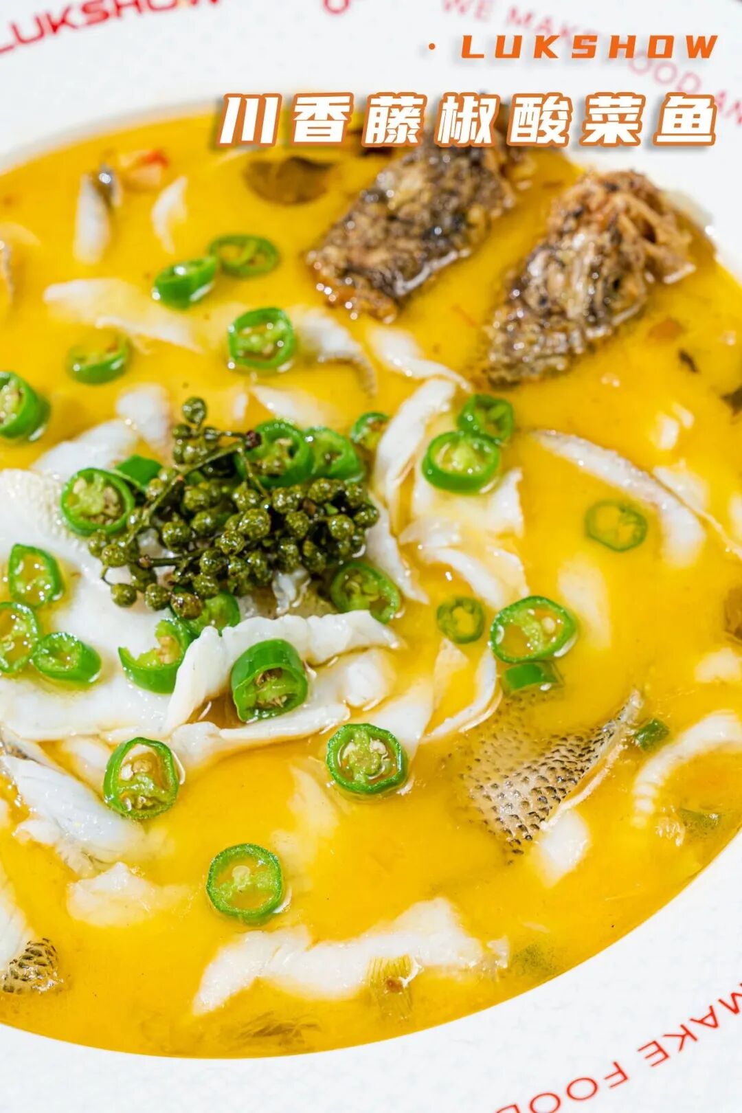 还有一款超经典的川香藤椒酸菜鱼,一直都是我的心头好!被热油烫过的青椒和藤椒,香气直接融入到金汤里,每口鱼肉都被裹上咸香麻的口感!