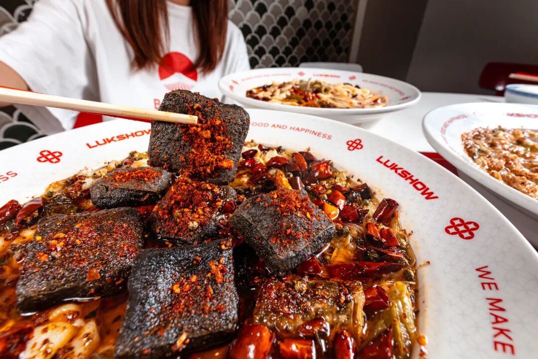 这款是在招牌原味酸菜鱼的基础上升级的,大块的臭豆腐铺在表面,看着就很馋人!