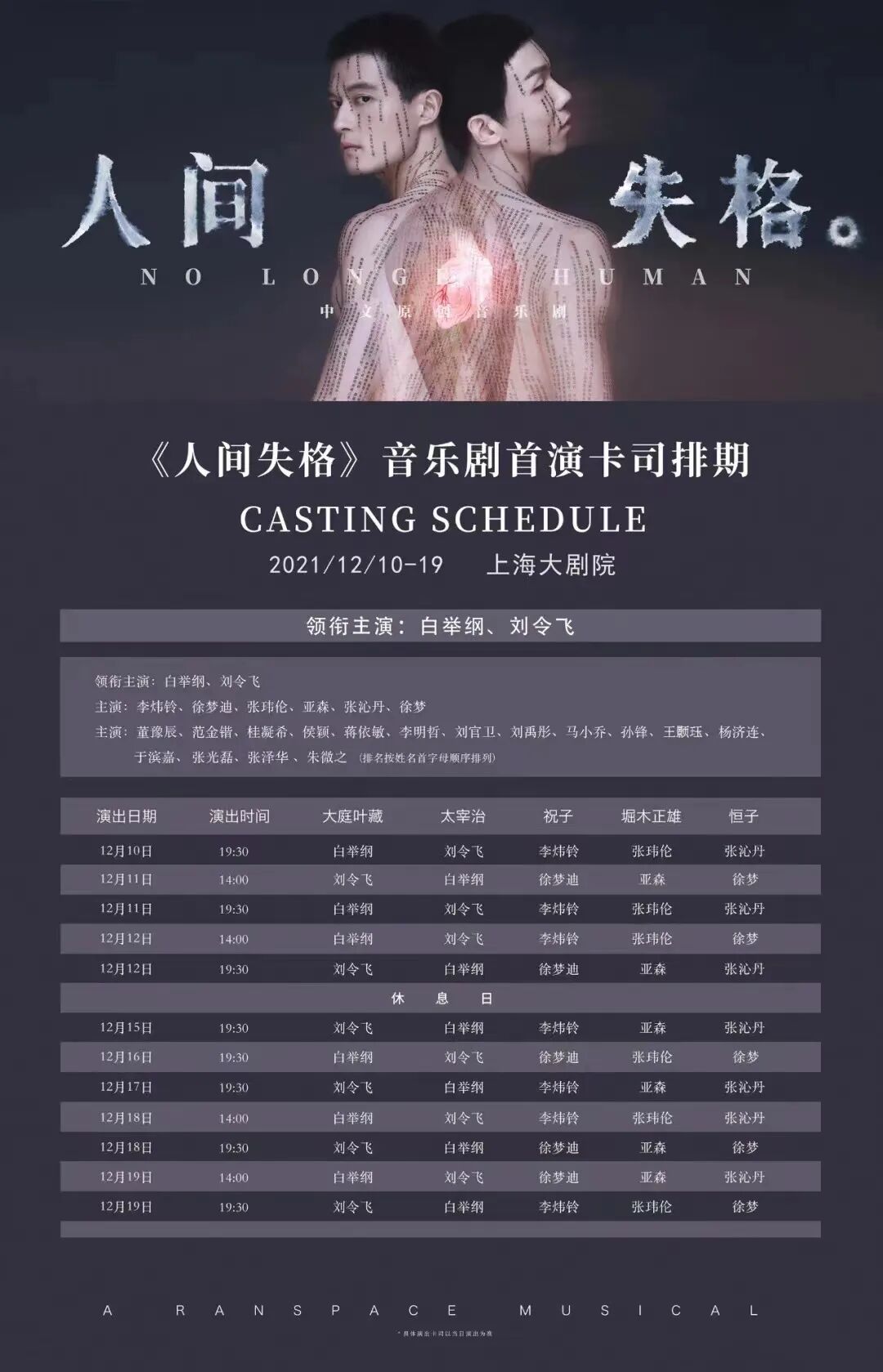 原创音乐剧《人间失格》海报,本期推文有互动赠票,文末活动信息请务必了解