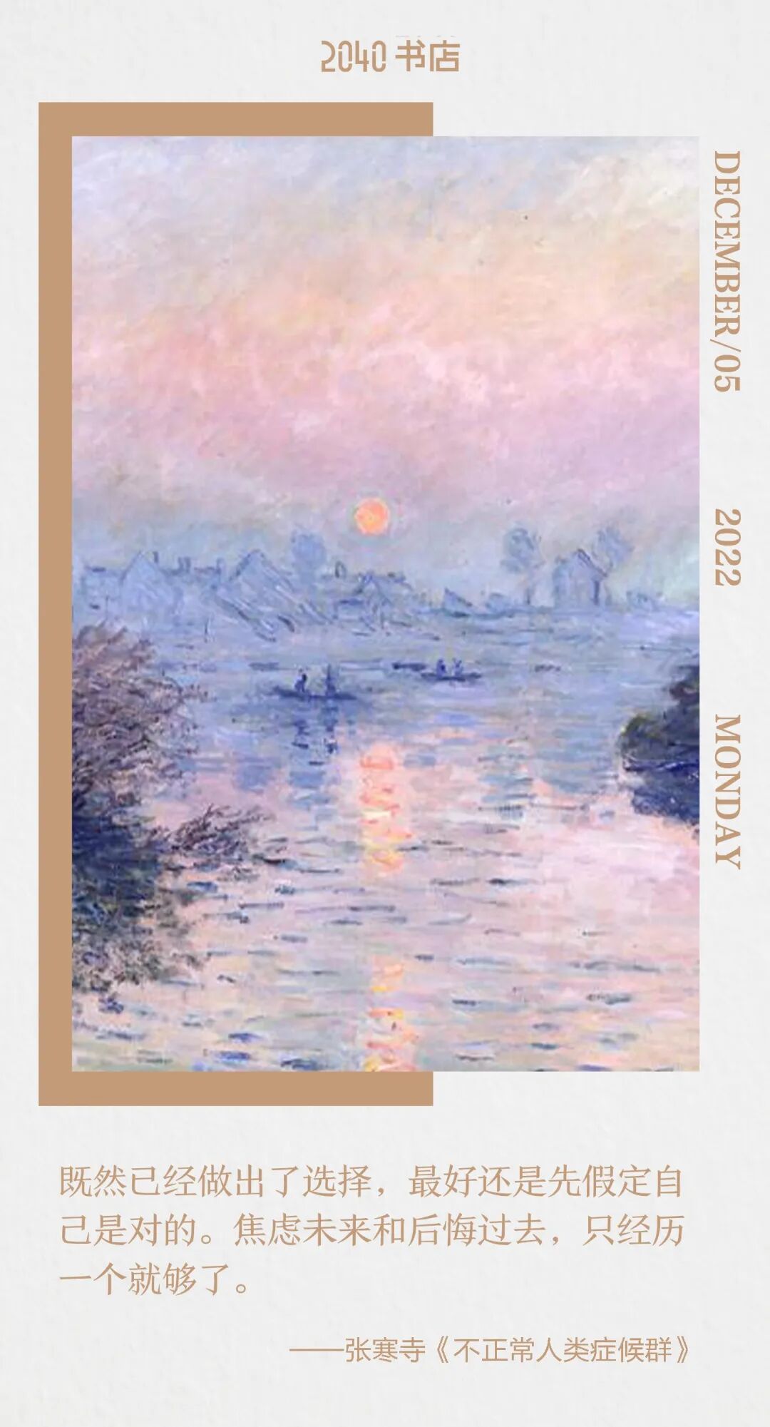 本周原画出自:Claude Monet《Sunset on the Seine at Lavacourt, Winter Effect》