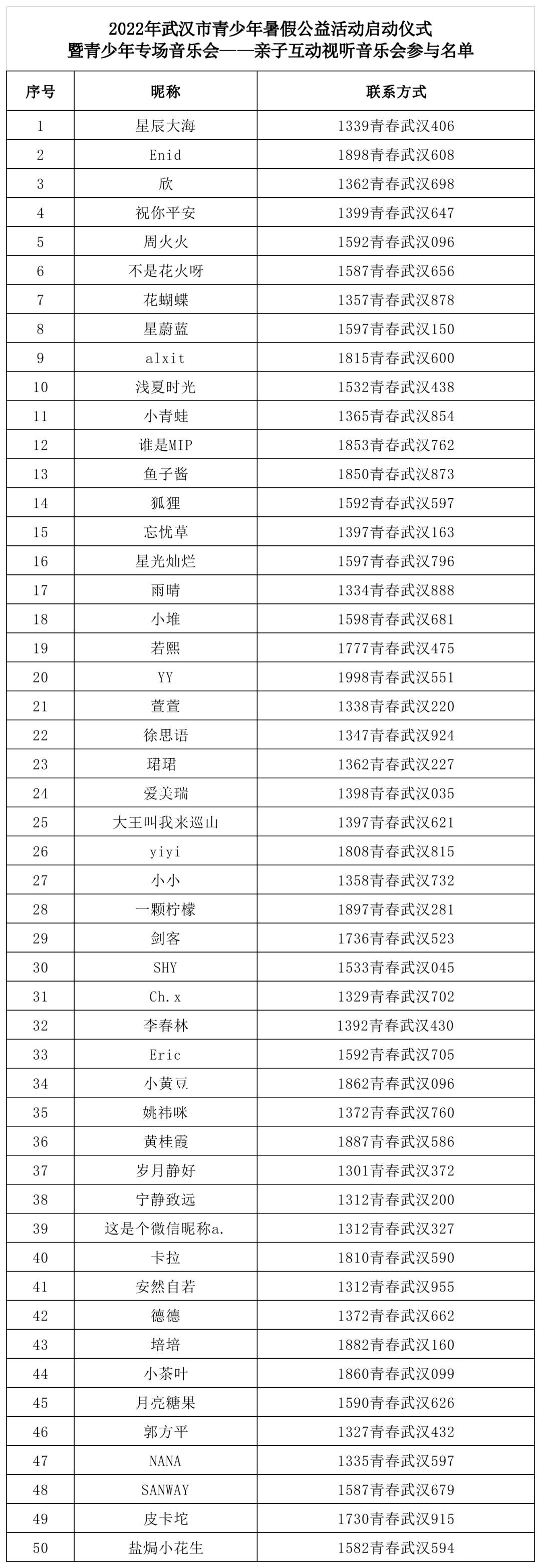 恭喜以上50组粉丝分别获得亲子音乐会门票2张,工作人员将会与您取得联系,告知具体活动事项,请保持电话畅通哦!