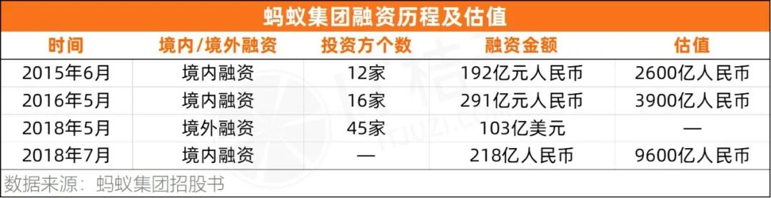 近期蚂蚁集团加快业务整改步伐,相继剥离花呗和借呗品牌,之后蚂蚁集团是否能成功上市尚不可知,但从其提交的招股书来看,其股东众多,但股权冗杂程度并不高。从其公布的融资历程来看,2015 年,蚂蚁集团引入 12 家境内资本,该轮融资 192 亿人民币,估值 2600 亿人民币,也就是说,12 家资本近 200 亿元,占股仅 7%;2016 年其再次引入 16 家资本,融资 291 亿人民币,以当时估值计算,占股同样在 7% 左右;2018 年 5 月和 7 月,蚂蚁集团先后获 45 家境外资本 103 亿美元融资和 218 亿人民币境内融资。两轮融资完成,蚂蚁集团估值 9600 亿人民币。