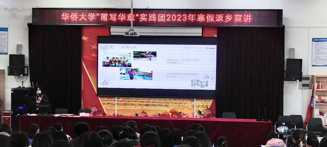 春风送暖,阳光和煦。为进一步激励高三学子,增进他们对高校的了解,励志远行,2月2日下午,2021届高三优秀毕业生,华侨大学大二学子余晨、邹煌宇两位同学在母校梯教做一场以“莆写华章“为主题的2023寒假返乡社会实践宣讲活动。
