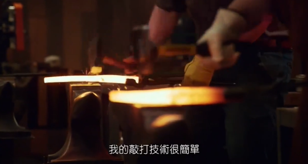 虽然有些武器的特殊性在锻造开始让铁匠们表示出了不同程度的陌生,一但走进了工坊,我们就能看见他们作为老铁匠的专业性,他们似乎是想证明无论什么刀都“殊途同归”,在评委的点评中,他们将手中的钢材烧红锻打,最后呈现出一把带着“荷尔蒙”的兵器。