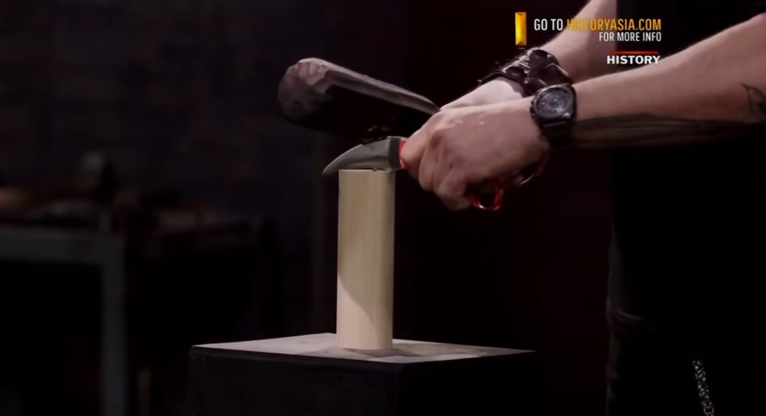 这些制作出来的武器会经过专业评委的严苛试验,从硬度、锋利度、实用性(没错,就是你想的那个实用性)多个角度出发设计的试验环节,每当看到这里从选手到观众都会屏住呼吸。