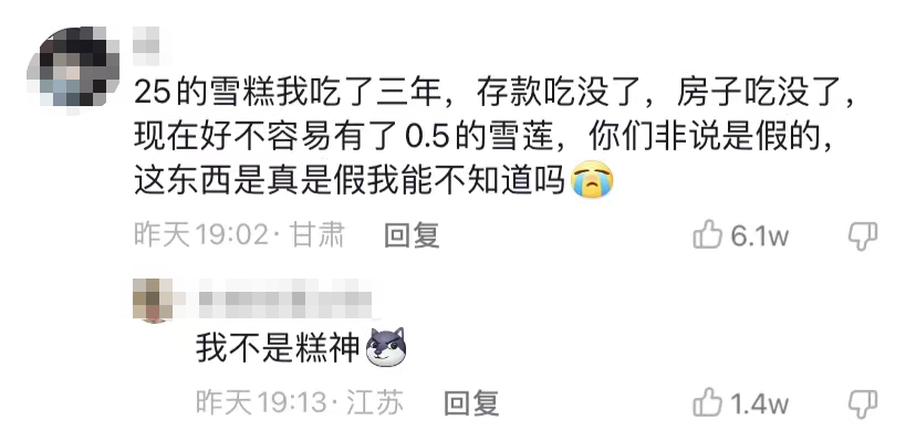 不过,对于“雪莲”的质量问题,一贯严格的网友们却显得格外宽容,表示“就算塌房我也当没看见,因为不嫌弃我穷”