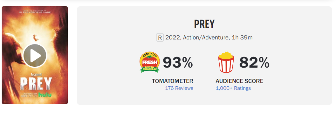 前两天在流媒体上播出的《铁血战士:猎物》,我原以为会像该系列之前的作品那样是一部烂片,但没想到电影的口碑超出预期的好。