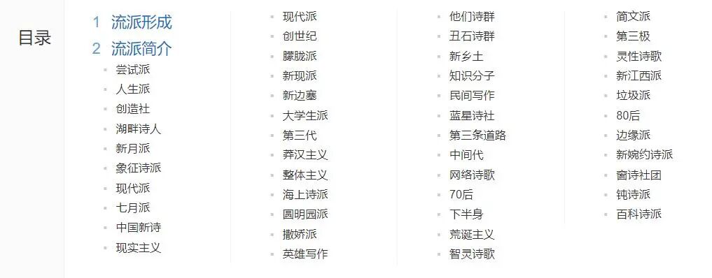 随手撸了下百度百科,发现……这些现代诗的分类很是繁多