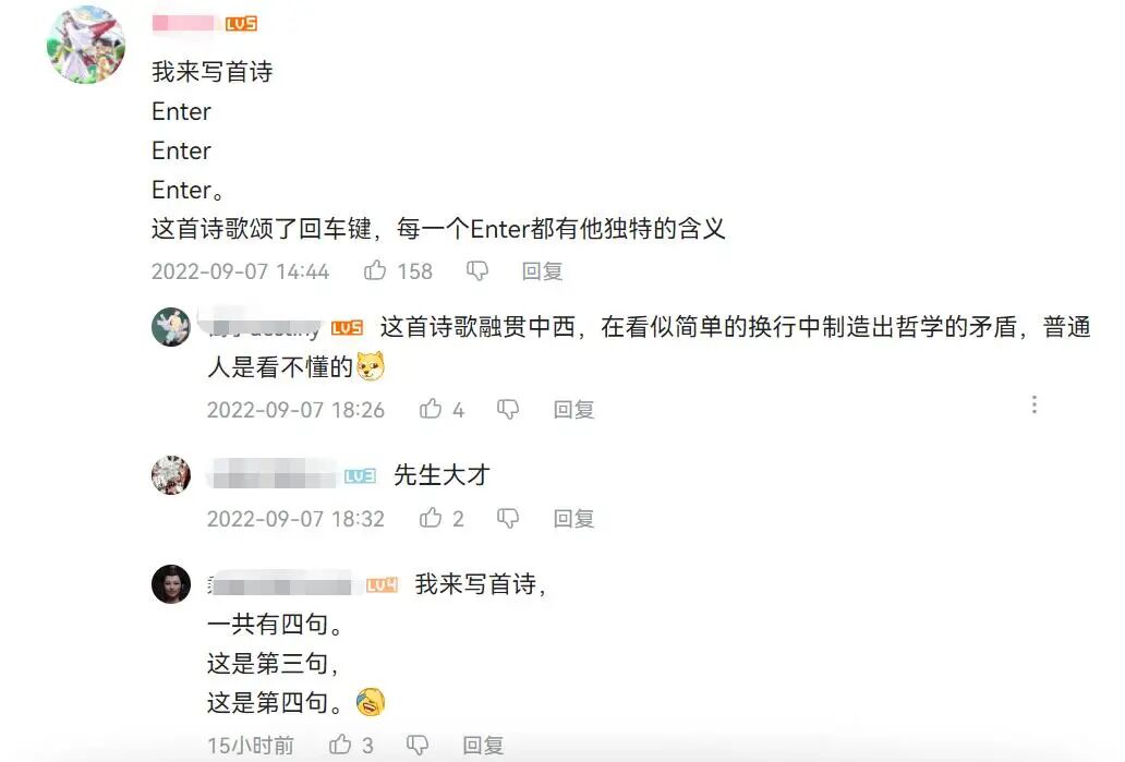 15年过去了,诗人和观众好像都没有什么变化,只是网友写的诗的内容,从批判变成了整活