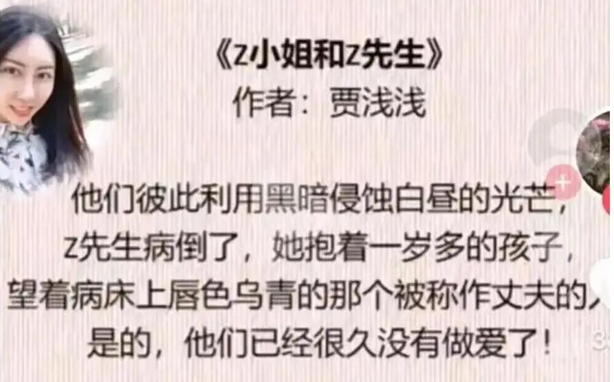 如今看来,贾浅浅和贾平凹的关系似乎并不是传承关系,考虑到贾平凹身为作协的主席,世袭也许更合适一些。她真正的传承更多也许来自赵丽华和乌青,并且开拓性更甚。前二者只让人觉得无厘头,以至于搞笑,她却能够让广大读者感到恶心,实在是青出于蓝。