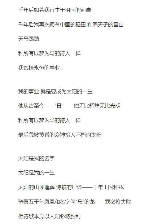 那时候我就觉得,相较于“宝剑锋从磨砺出,梅花香自苦寒来”,这首诗少了古诗特有的矜持与冷静。但情感的充沛和冲击,却是比过去的诗歌强了不少。